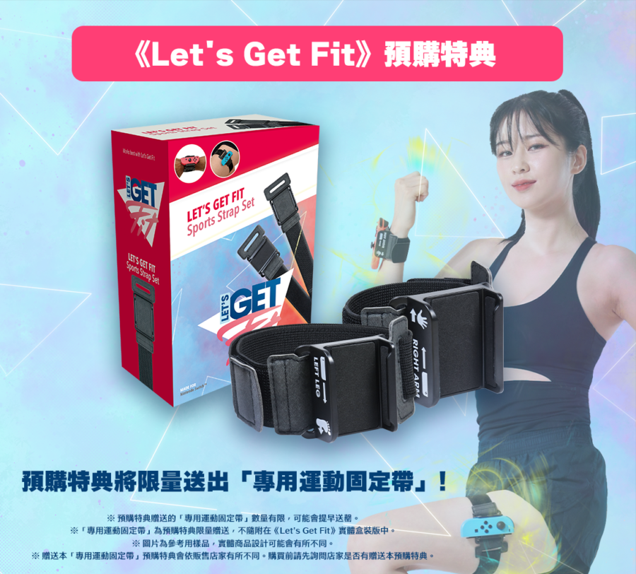 ※「专用运动固定带」为预购特典限量赠送,不随附在《Let’s Get Fit》实体盒装版中。