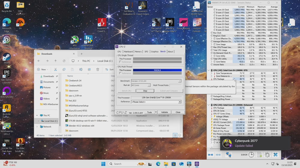 简单来说,就是有多位用户回报在执行高负载任务,特别是玩使用Unreal Engine引擎的3A游戏时,会频繁遇到应用程序崩溃、游戏闪退、出现「内存不足」错误,甚至出现Windows 蓝白当机(BSOD)等问题。